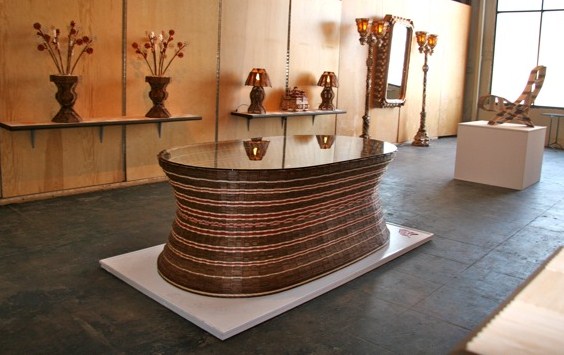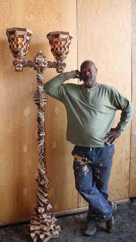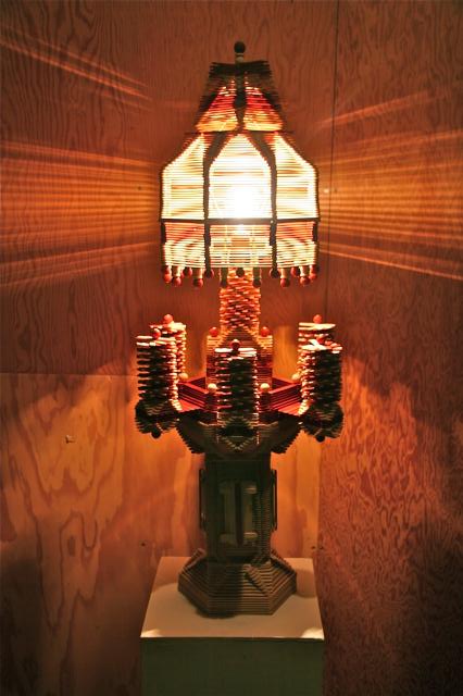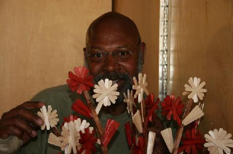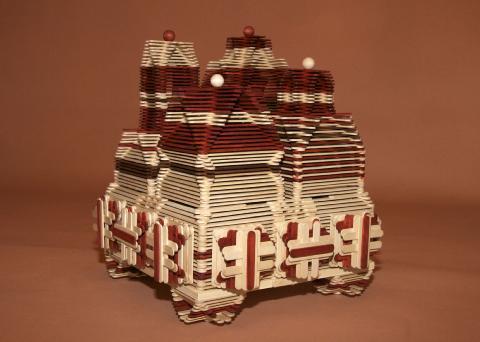 All pieces containing color, the sticks are hand stained prior to construction. I pride myself in trying to never cut sticks to conform to shape(s) for the challenge is to erect the piece out of the manufactured sizes and shapes. I do not draw or sketch my ideas, I see them in my mind's eye and it is from that snapshot I begin.